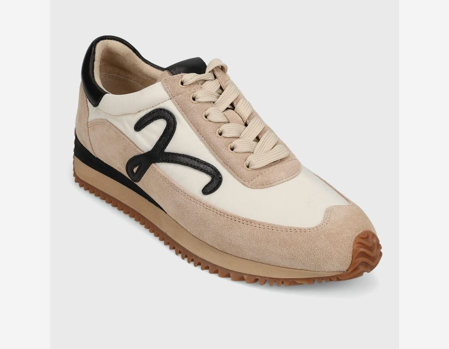 Retro lace-up athleisure sneaker. Padded heel collar. Ultra-padded insole. Two-tone midsole. 1 inch rubber athletic sole.