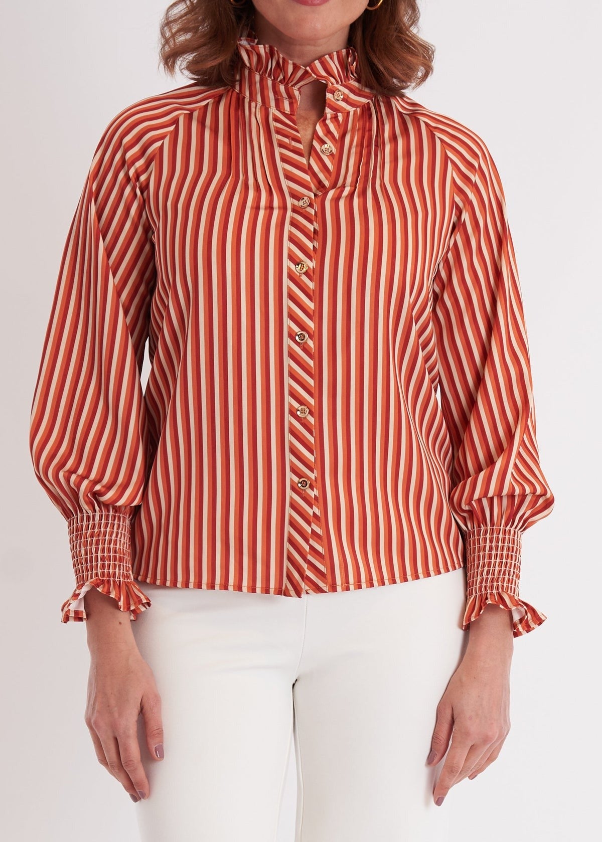 The Plato Blouse features a bold yet classic print that's sure to turn heads. With a high collar, button-front design, and elastic cuffs, it offers a playful mix of structure and comfort. Easy to dress up or down, this blouse adds a stylish twist to any outfit—whether you’re headed to brunch or the office.